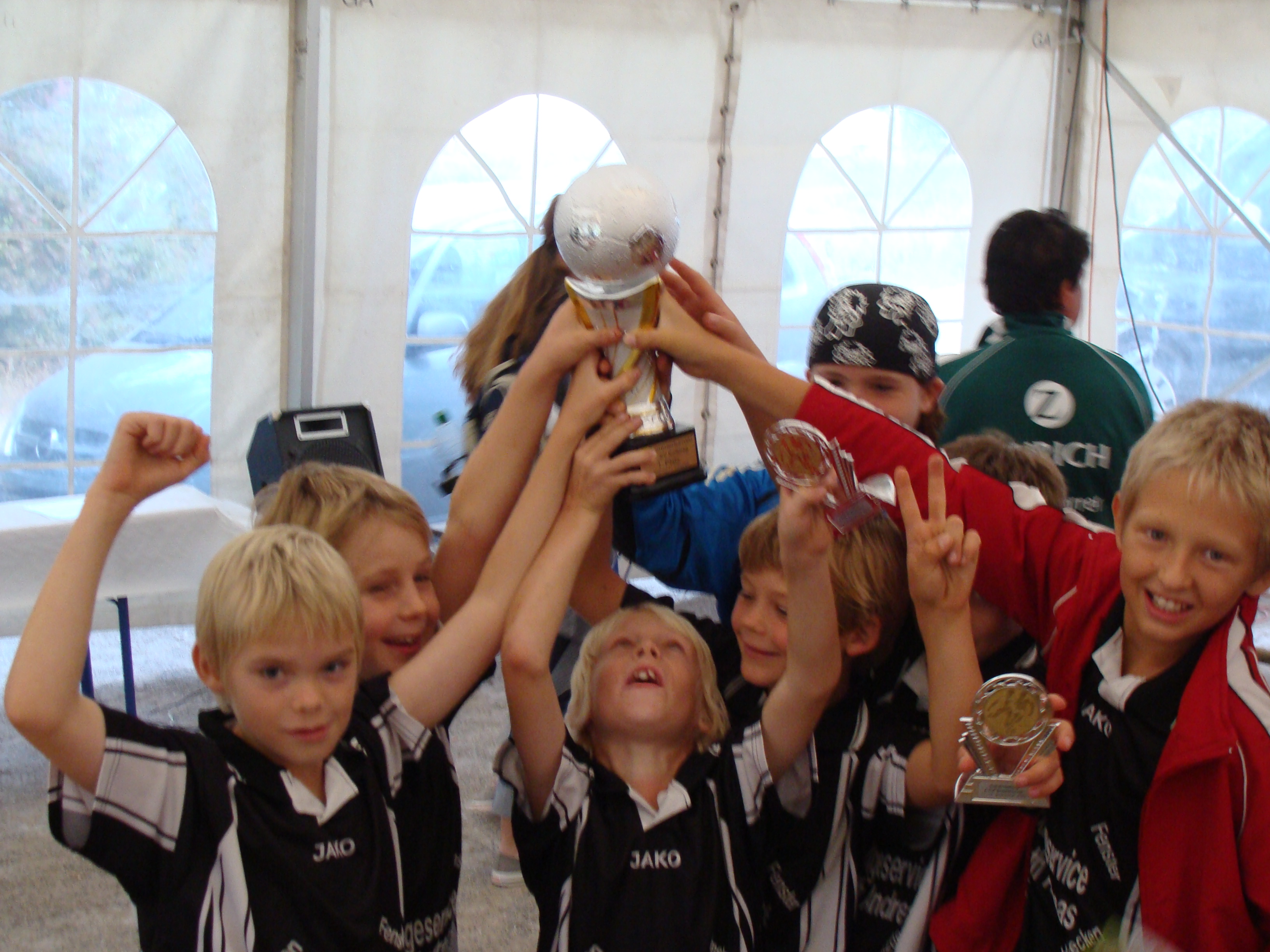 Wir waren im ganzen Turnier läuferisch sehr stark, die Taktik und das zweikampfverhalten war klasse, ausser gegen Keilberg. Alle Siege hätten durchaus auch höher ausfallen können, aber an der Chancenverwertung müssen wir noch arbeiten. Das Verteidigungsverhalten der ganzen Mannschaft war klasse, kein Gegner hatte eine klare Torchance, das Gegentor war ein Sonntagsschuss der genau paßte. Alles in allem ein verdienter Turniersieg. Dreimal Training zahlt sich aus, die Konditon stimmt ! :)
